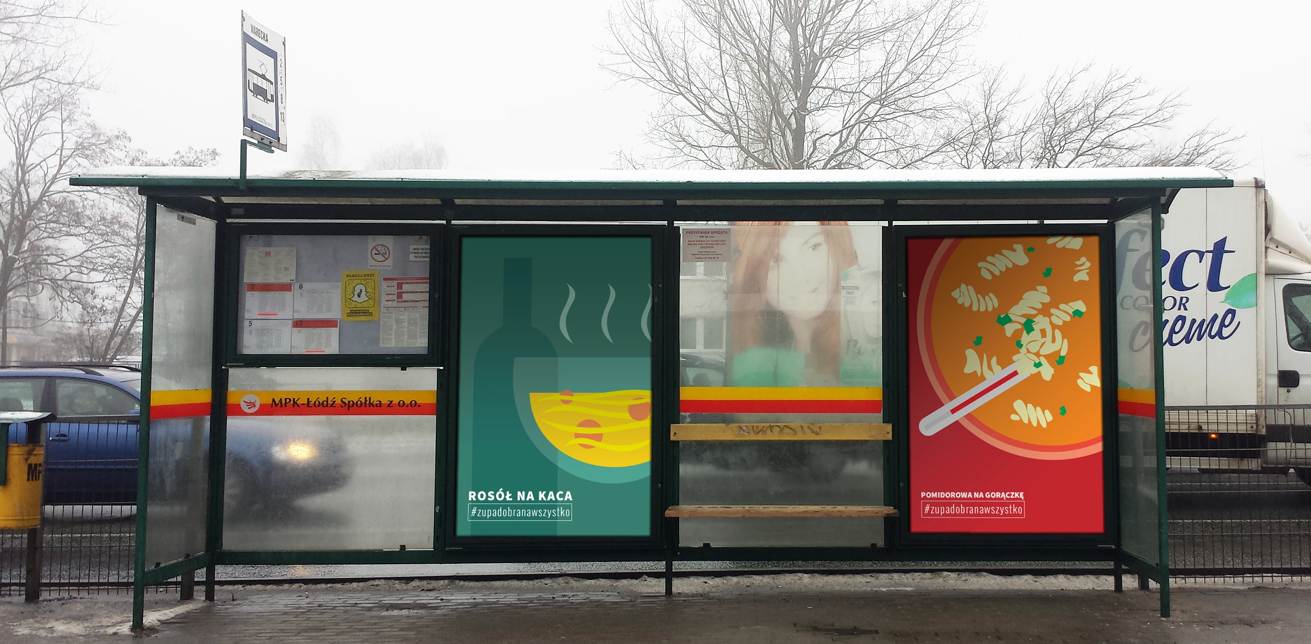 Kampania reklamowa #zupadobranawszystko. Projekt koncepcyjny ukazujący zupę jako idealne rozwiązanie na każdą okazję. Kampania opiera się na trzech ilustracjach przedstawiających różne rodzaje zup: pomidorową na gorączkę, warzywną wspierającą odchudzanie oraz rosół – klasyczne remedium na kaca.